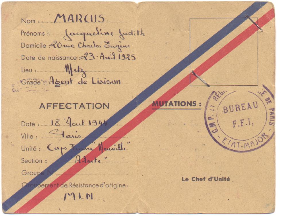 תעודת לוחם עם בעלות הברית לשחרור פריז והתג המזהה