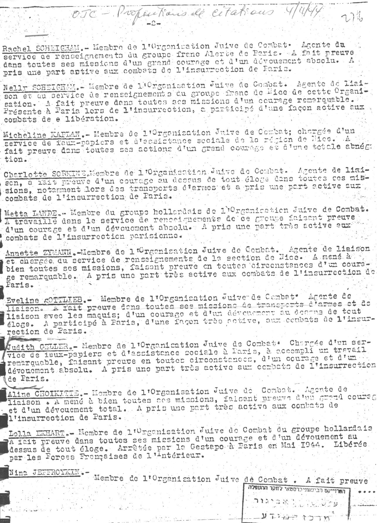 חברת הארגון היהודי הלוחם. אחראית על מדור מסמכים מזויפים ועובדת סוציאלית בפריז.