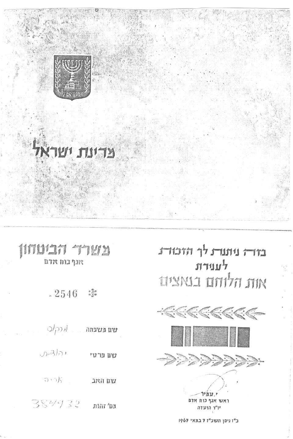 DECORATION PAR LE GOUVERNEMENT ISRAELIEN DU COMBATTANT CONTRE LES NAZIS